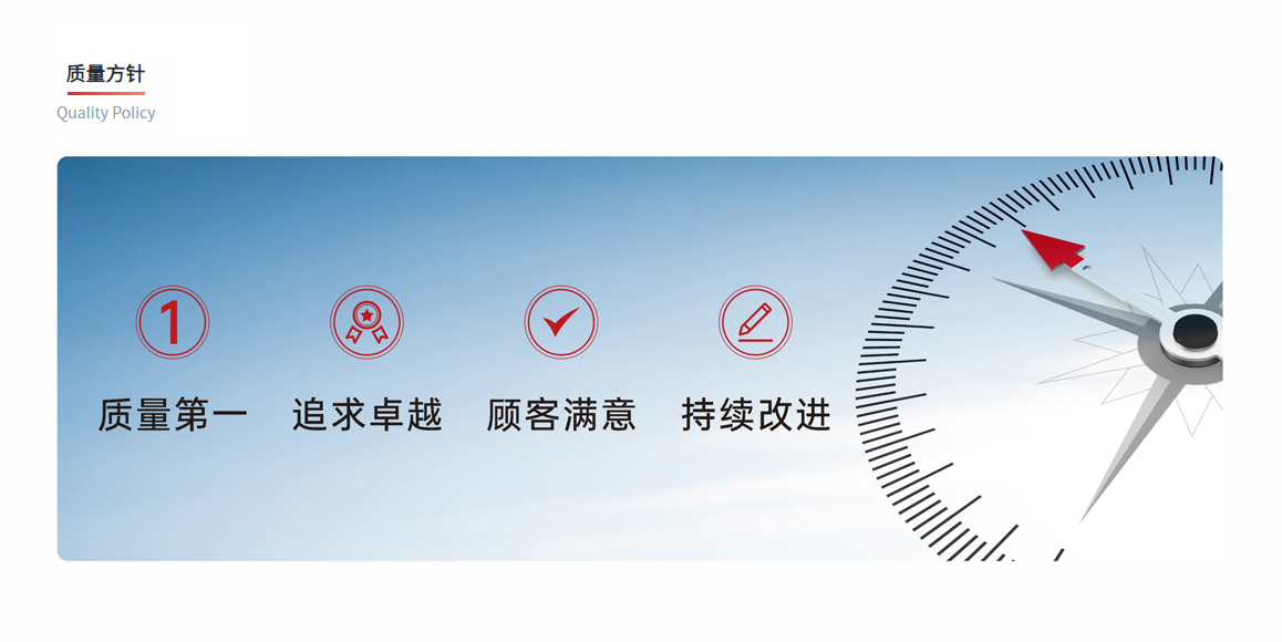 產(chǎn)品質(zhì)量是公司永續(xù)經(jīng)營(yíng)的生命主題,公司通過標(biāo)準(zhǔn)化、精細(xì)化等方式不斷追求卓越品質(zhì),通過技術(shù)創(chuàng)新改進(jìn)產(chǎn)品和服務(wù)質(zhì)量,使公司的質(zhì)量管理水平和產(chǎn)品質(zhì)量不斷提升。